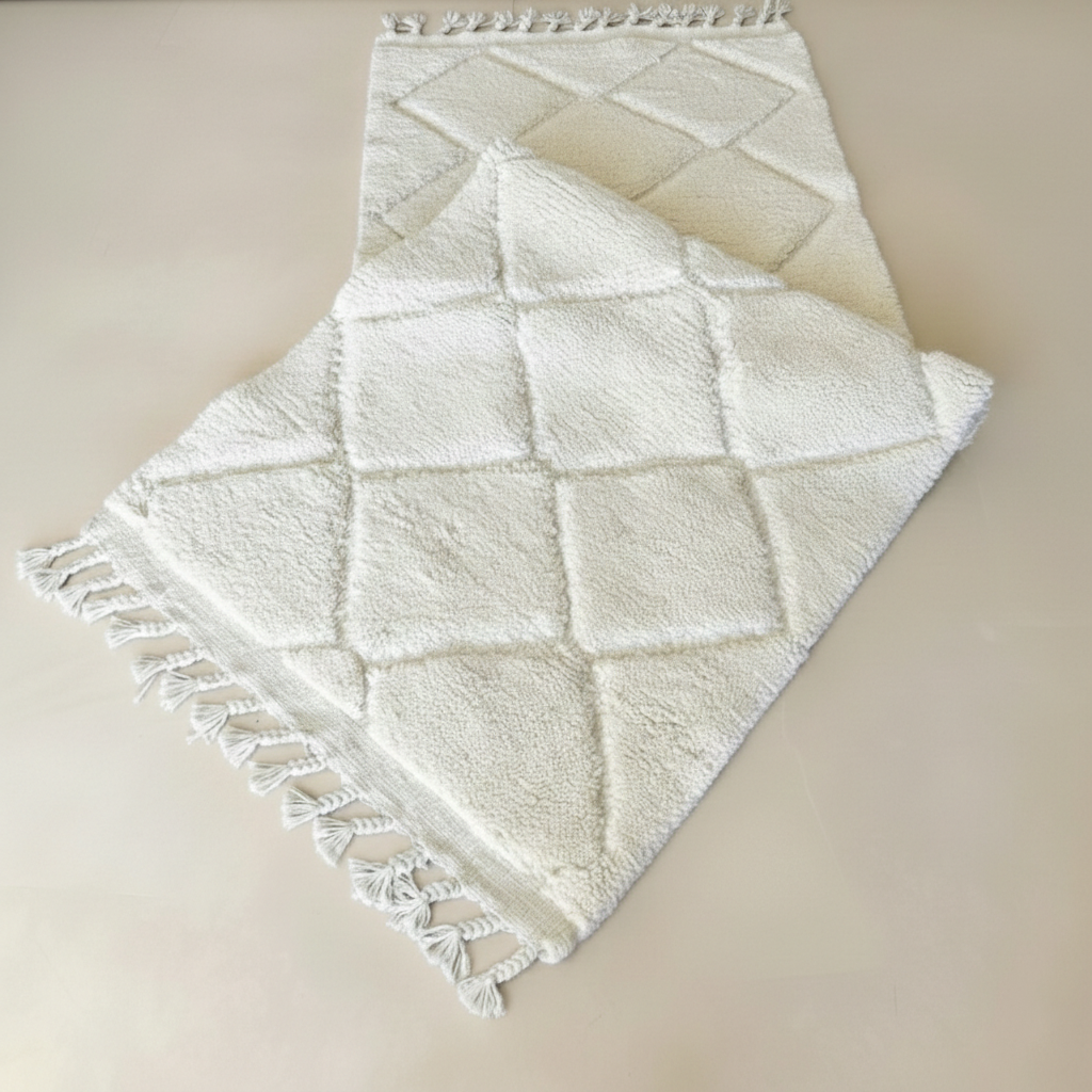 Woven by hand in the heart of the Atlas Mountains, this rug is a testament to ancestral heritage and the luxury of nature. Crafted from 100% organic, undyed wool, it offers a plush, tactile experience that grounds your home in authenticity. Each piece is a unique, handmade heirloom, carrying the subtle spirit of the artisan who knotted every diamond pattern. More than just a floor covering, this is a soulful addition to your home, bringing a refined, timeless warmth and sustainable elegance to your modern sanctuary.